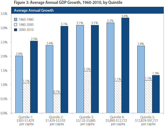 In fact, growth has markedly decelerated during the last two decades, especially in the developing countries, when compared to the 1960-1980 period when 'bad' policies prevailed.