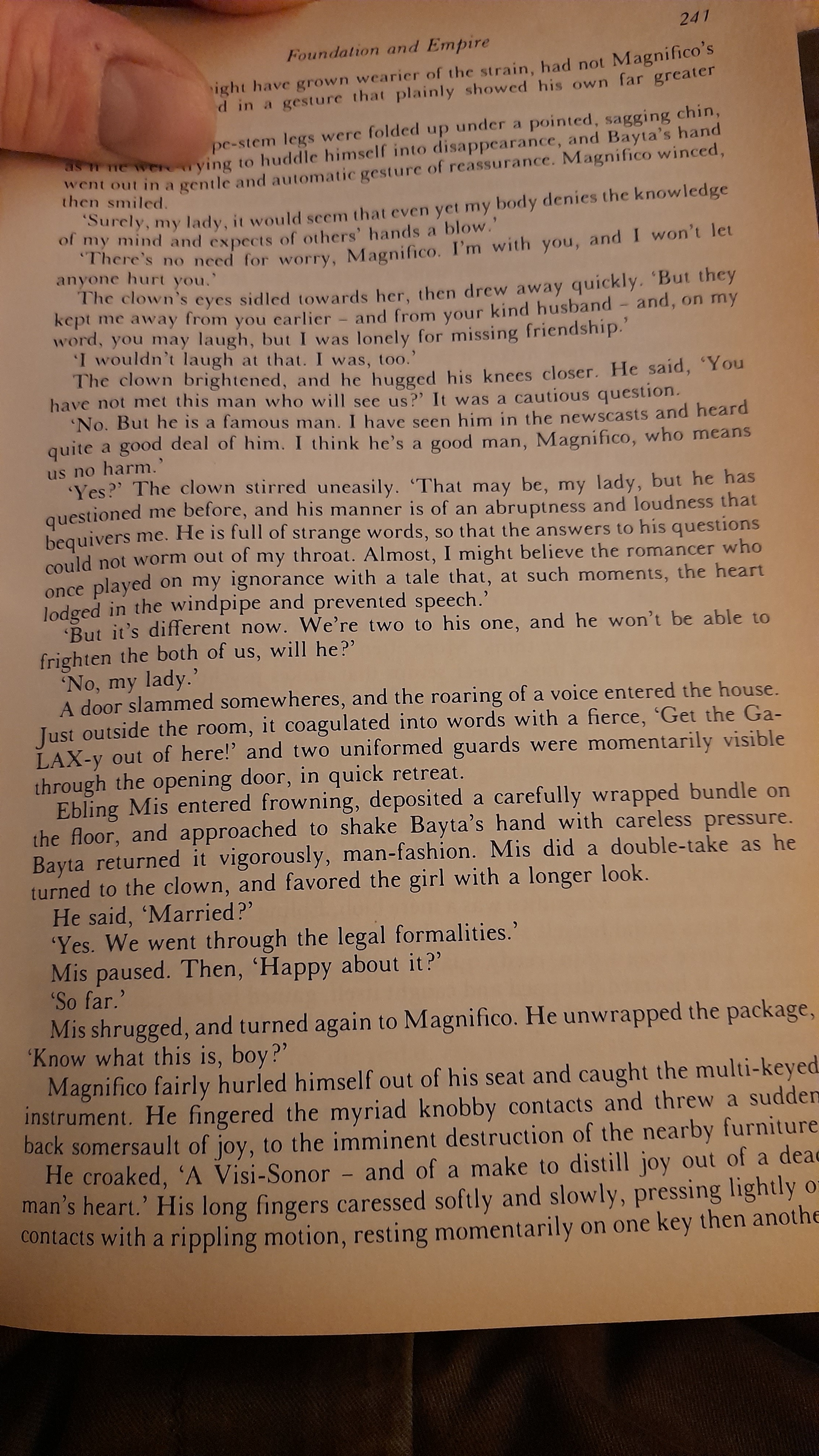 • Ebling Mis "Near as I can make it, no one on the Foundation can make it talk right"