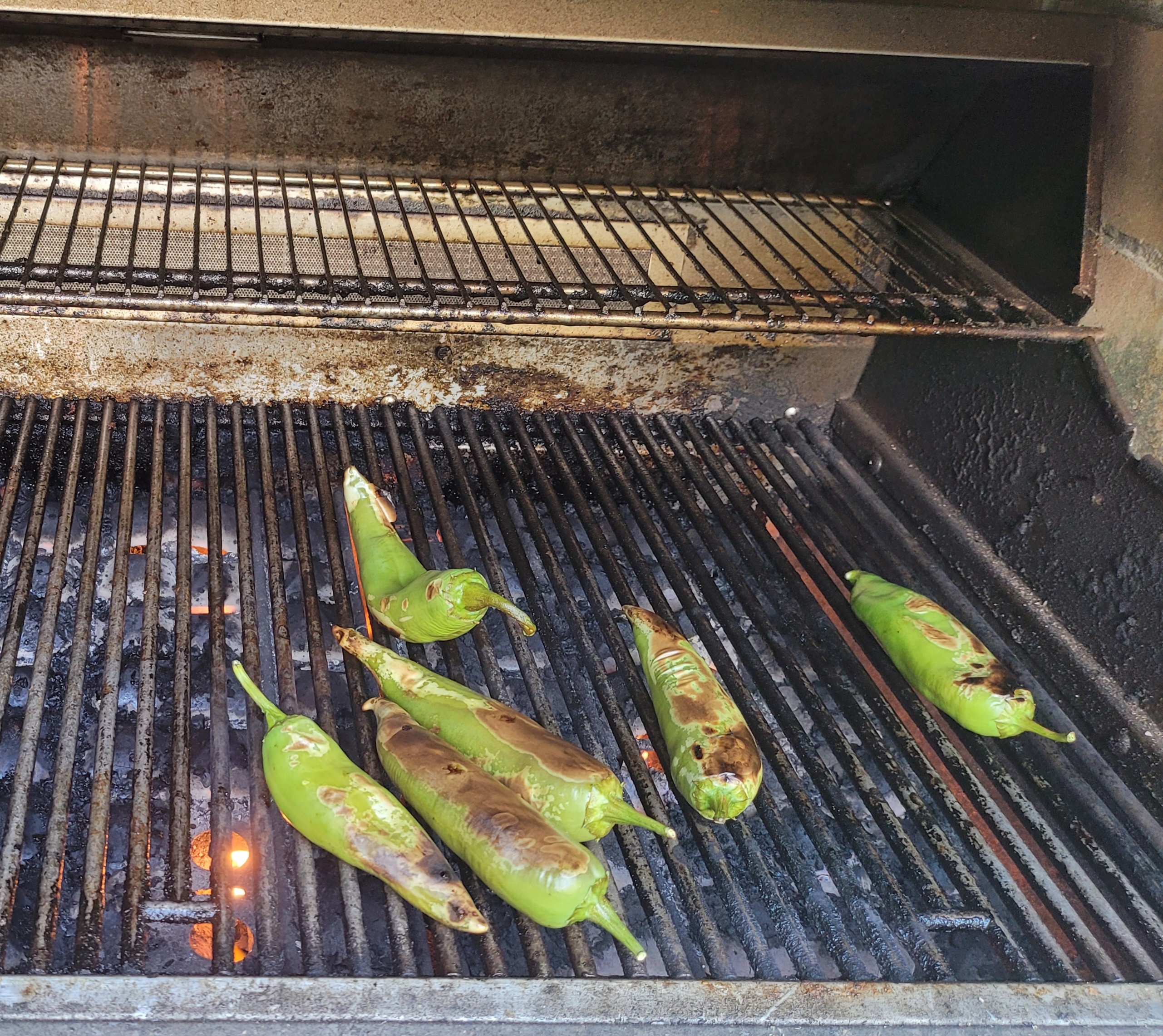 Bonus pic of the last few Big Jim green chiles roasting on the grill: