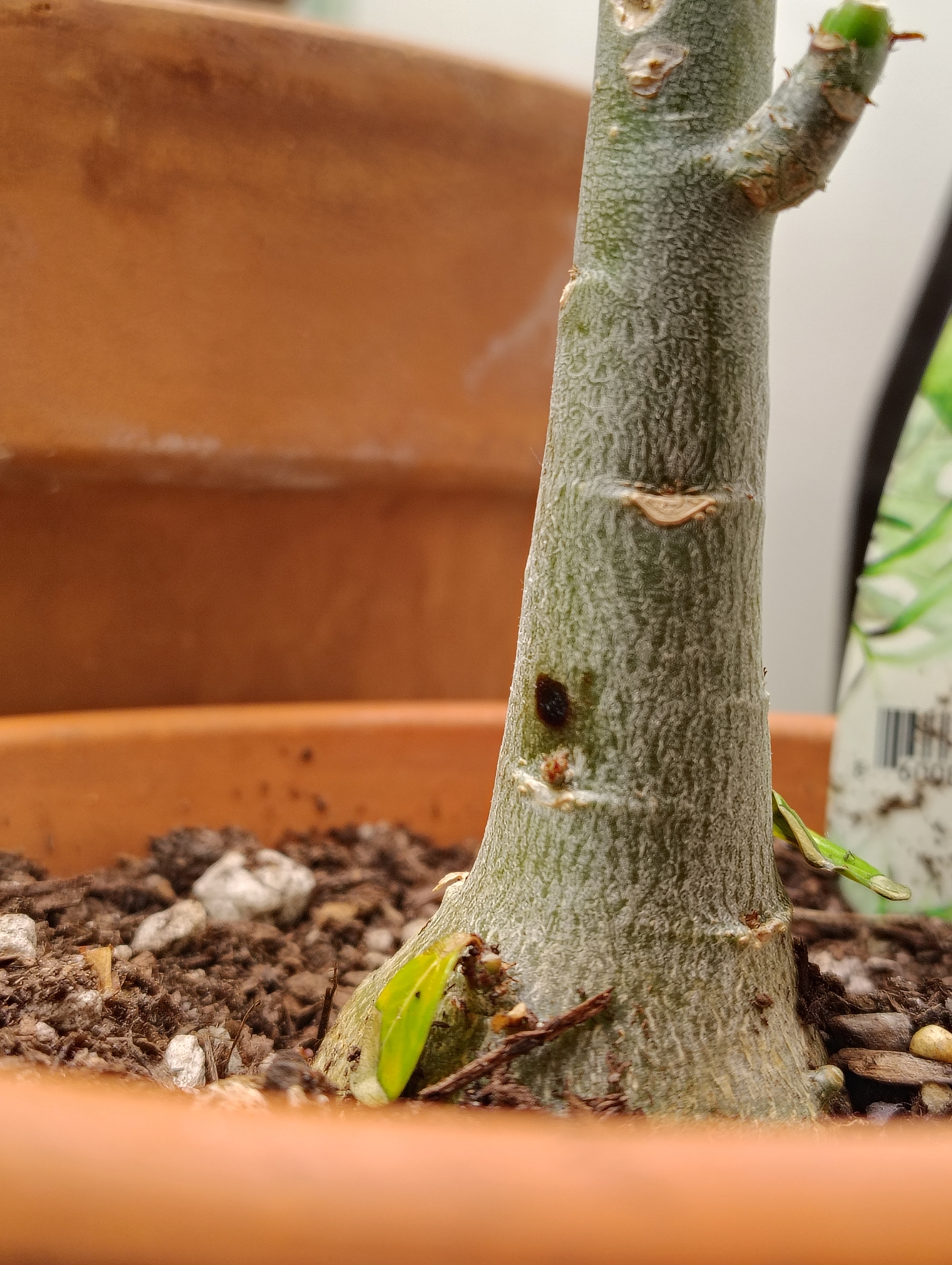 The only bugs around are a few fungus gnats that rode in on produce a few months ago. Any advice would be helpful! I'm trying not to carve into it unless absolutely necessary, as it's only about as tall as a pencil.