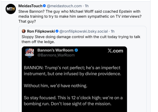 Steve Bannon on Trump after these latest depraved revelations: "Sure, he's not perfect...."